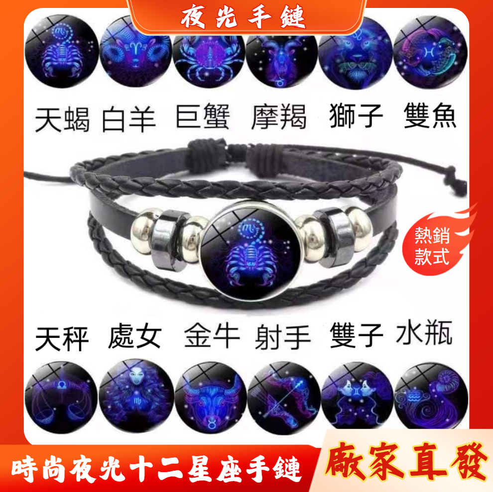 十二星座手鍊情侶皮手鍊多層編織時尚,夜光十二星座手環飾品小清新