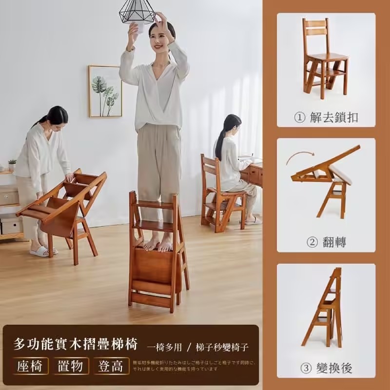 2分鐘前【現貨】二合一折疊梯子椅,木料製作,打磨精緻,可變為簡易小梯子,可幫助拿取高處物品 - 【四層|純實木|椅子秒變梯子】NT$2880