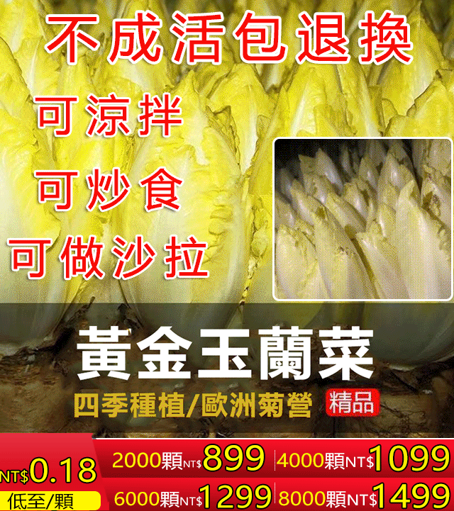 半小時前清脆可口的【黃金玉蘭菜】居然這麼簡單就可以種出來!生吃脆香甜,炒肉比肉鮮,輕輕鬆鬆幾個月就可以收穫,關鍵是年年可以割,年年可以長,年年有的吃 - 僅此一天!比利時「金玉蘭種子」8000顆(送狀根肥料)100%用戶的選擇!NT$1499